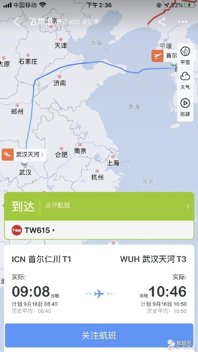 9月16日上午10时46分,仁川至武汉的TW615航班成功降落武汉天河国际机场。这是自新冠肺炎疫情发生,国际定期客运航班停运8个多月以来,湖北首个恢复运营的国际地区客运航班。
