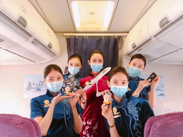 在济南、青岛、厦门、烟台、重庆、北京等地的精品航班上,“鲁雁们”身着特色服饰,认真策划、精心布置,客舱内放眼望去都是融合了文人山水画、篆刻印章等元素的诗文内饰,空中文化之旅就此启航。
